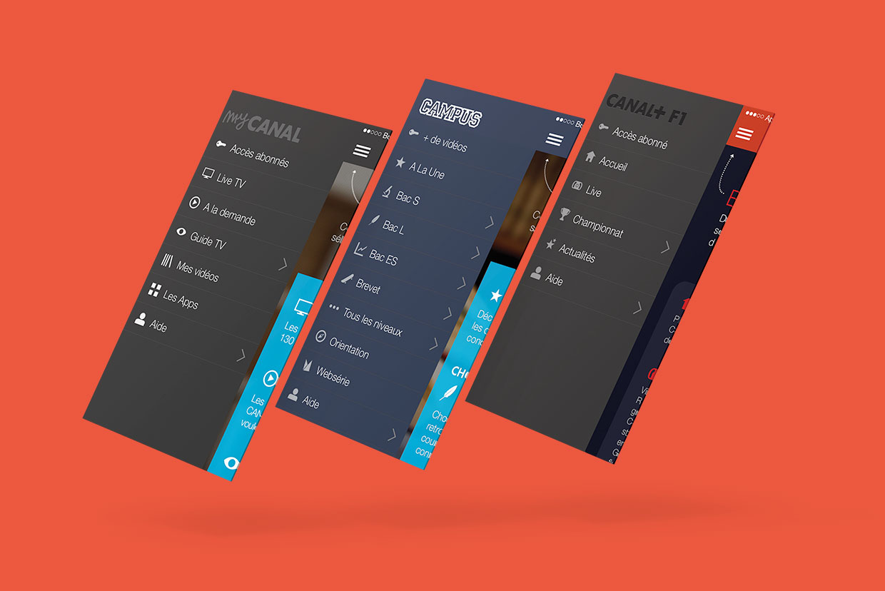 For CANAL+ group apps, we chose a “hamburger” menu to keep a fair flexibility according to the number of available features for each variation.