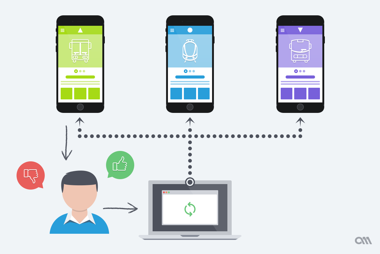 It also allows delivering improvements and bug fixes on several apps. Thus, you may test modifications on a single app and then release them all: benefit from the accumulated experience on each app and mitigate the risks.