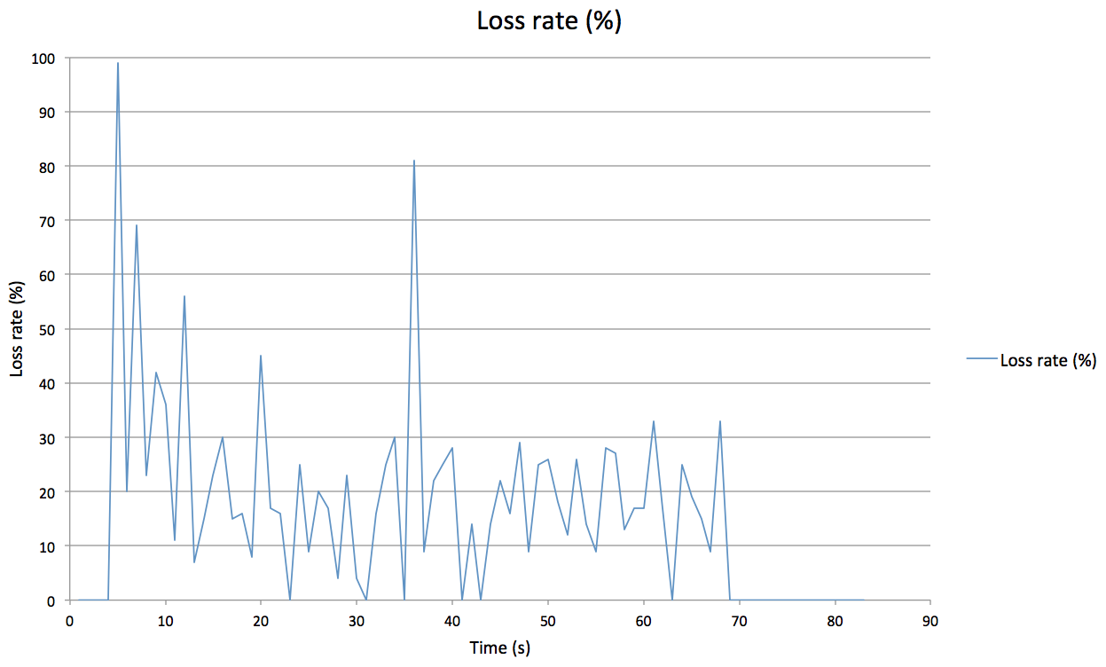 Measuring the TCP efficiency over the “subway’s 2G cellular network” communication channel comes down to comparing its performances with the best the channel can offer; this is why we used UDP. Indeed, as UDP does not have any flow control or data reliability, this is possible to evaluate the channel throughput by observing the packets transmision.