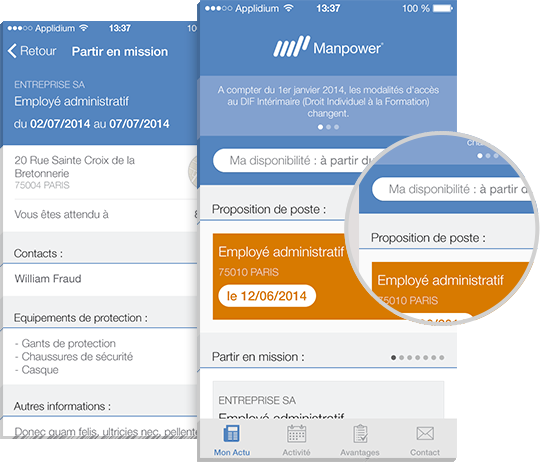 With Mon Manpower, the temporary workers can now easily manage their missions and have a new communication channel with their employers. Then this new solution offers a greater proximity between Manpower and the temporary workers who use the app