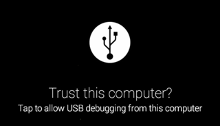 - Connect the glasses to your computer through USB. A popup may appear asking you whether you want to trust the computer or not. “Allow” is the right answer!